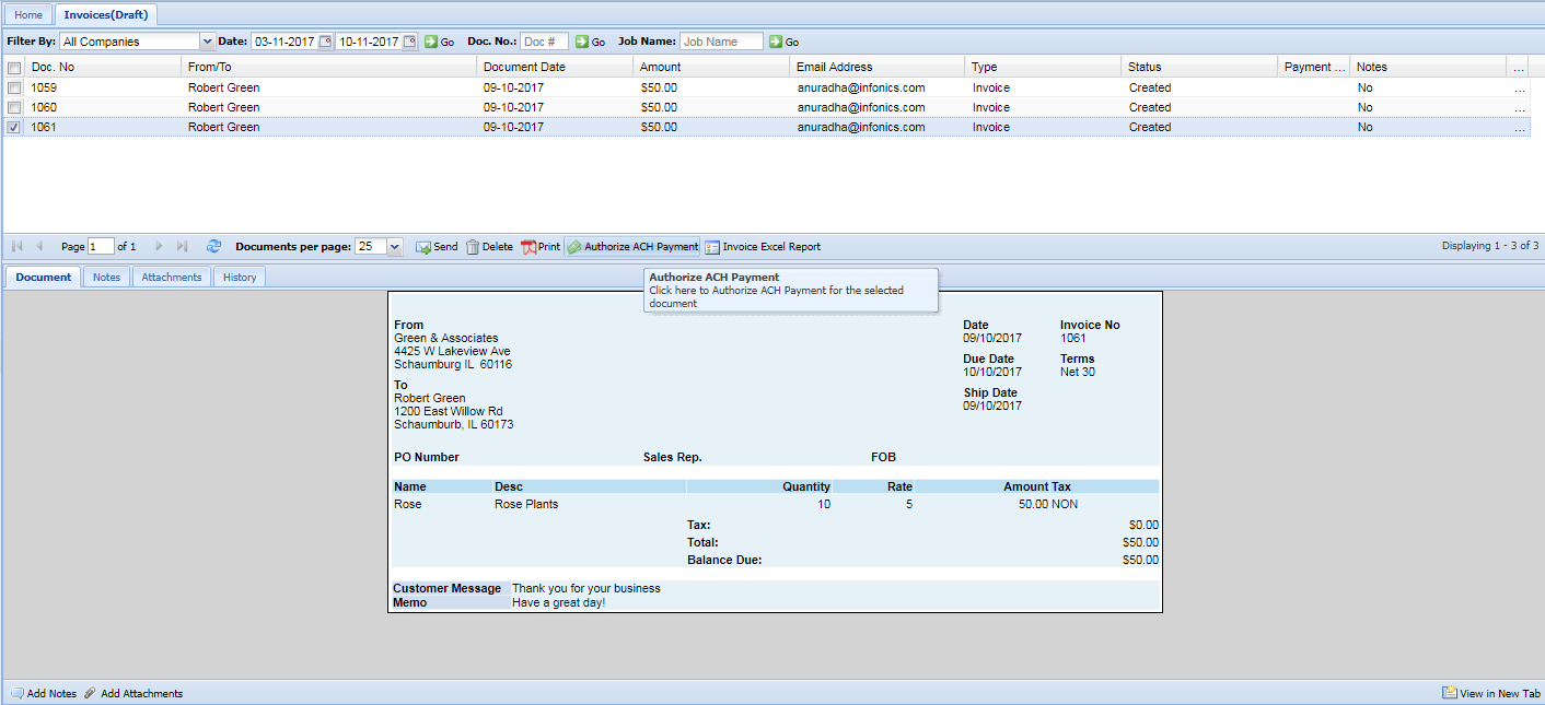 Pre-approved payments can be processed based on invoices in QuickBooks