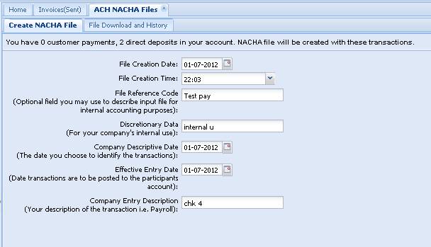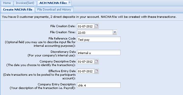 - Send the NACHA file to Bank as per your bank’s guidelines