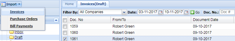 - All invoices created in QuickBooks since last import will be uploaded to InLattice > Invoices > Draft folder. You will be directed to Invoices > Draft folder