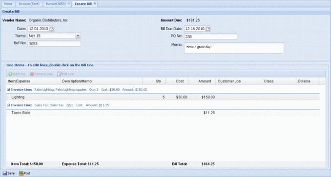- You will post invoices as bills to QuickBooks, with automatic mapping of invoice line items to bill line items